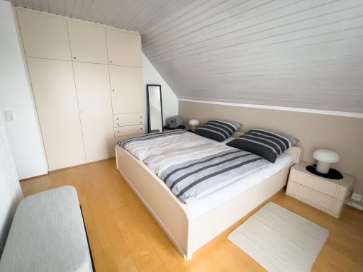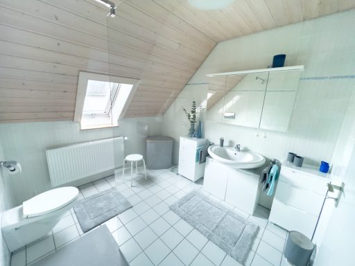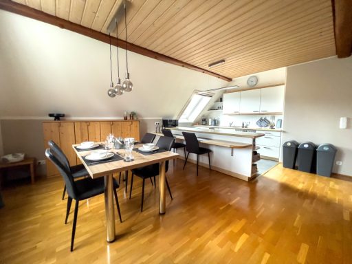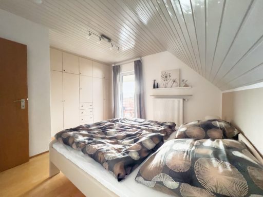 Die großzügige Unterkunft mit ca. 87 m² befindet sich im Dachgeschoss eines gepflegten Hauses in einem ruhigen Wohngebiet in der Nähe eines griechischen Restaurants. Die Haßfurter Innenstadt und der Bahnhof sind in nur ca. 7 Gehminuten erreichbar.