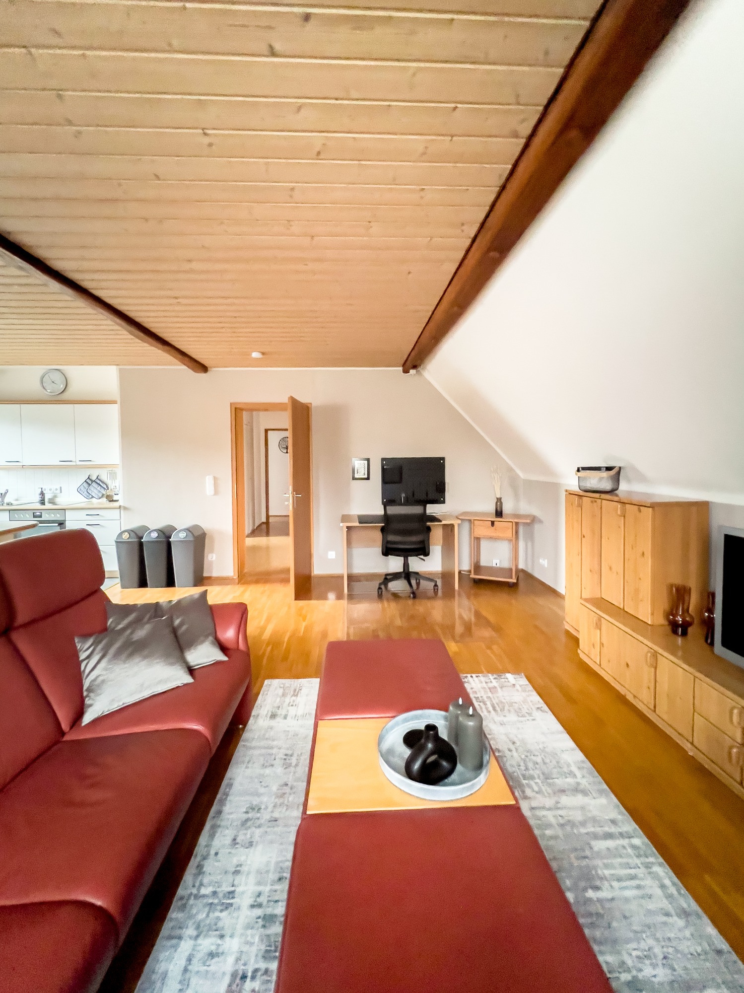 Die großzügige Unterkunft mit ca. 87 m² befindet sich im Dachgeschoss eines gepflegten Hauses in einem ruhigen Wohngebiet in der Nähe eines griechischen Restaurants. Die Haßfurter Innenstadt und der Bahnhof sind in nur ca. 7 Gehminuten erreichbar.